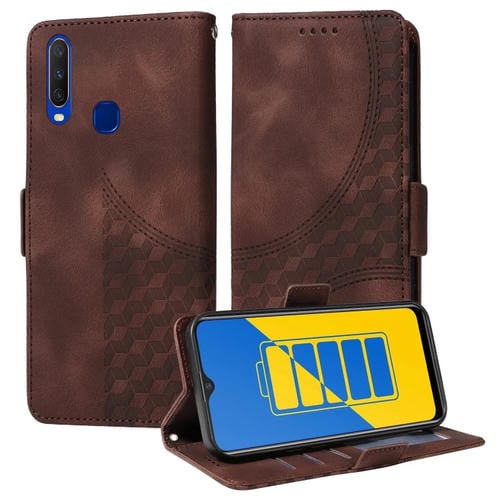 Para Vivo Y17 / Y15 / Y12 Funda para Teléfono de Cuero Estrellado con Rombos En Relieve (Marrón)