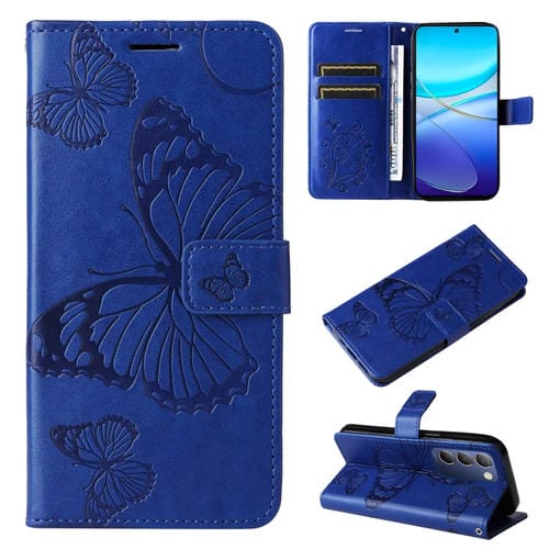 Para Vivo Y200E 5G Global / V30 Lite India Funda para Teléfono de Cuero con Tapa En Relieve con Mariposa 3D (Azul)