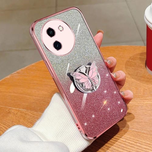 Para Vivo Y200I / T3X 5G Estuche para Teléfono de TPU con Soporte de Mariposa con Brillo Degradado Plateado (Rosa)