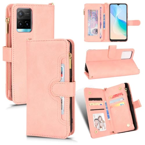 Para Vivo Y21 2021 / Y21S / Y33 Litchi Textura Cremallera Funda de Cuero para Teléfono (Rosa)