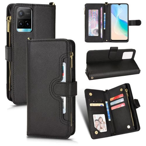 Para Vivo Y21 2021 / Y21S / Y33 Litchi Textura Funda de Cuero con Cremallera para Teléfono (Negro)