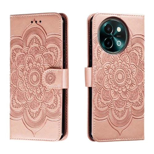 Para Vivo Y38 Sun Mandala Funda de Cuero para Teléfono con Patrón En Relieve (Oro Rosa)