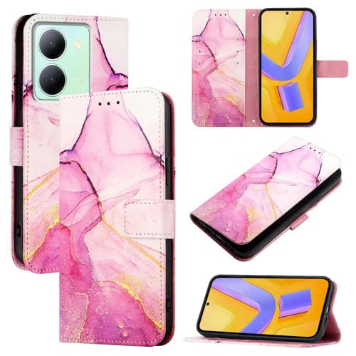 Para Vivo Y78 + / Y78 5G Global / V29 Lite Pt003 Funda para Teléfono de Cuero con Tapa con Patrón de Mármol (Rosa, Morado y Dorado)