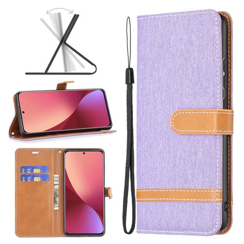 Para Xiaomi 12 Color Denim Texture Texture Cuero Case (Púrpura)