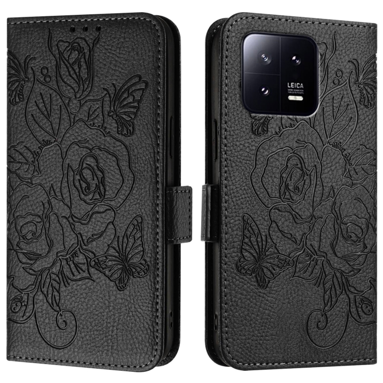 Para Xiaomi 13 5G Funda de Teléfono de Cuero Antirrobo Rfid con Relieve Rosa (Negro)