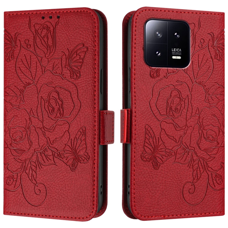 Para Xiaomi 13 5G Funda de Teléfono de Cuero Antirrobo Rfid con Relieve Rosa (Rojo)