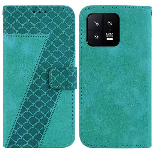 Para Xiaomi 13 5G Funda de Teléfono de Cuero En Relieve En Forma de 7 (Verde)