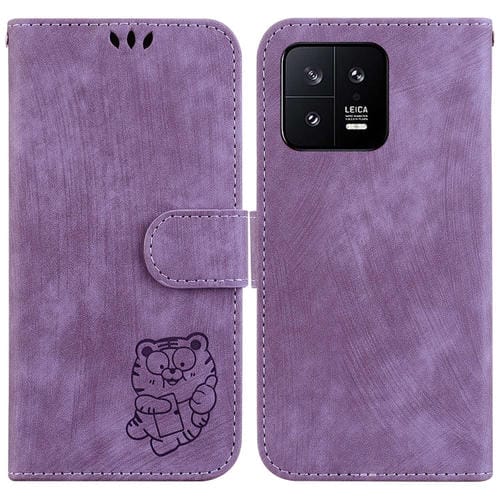 Para Xiaomi 13 5G Little Tiger Funda de Cuero En Relieve para Teléfono (Púrpura)