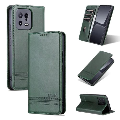 Para Xiaomi 13 Azns Funda de Teléfono con Tapa de Cuero con Textura de Becerro Magnético (Verde Oscuro)