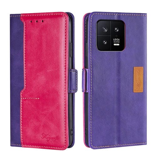 Para Xiaomi 13 Caja de Teléfono de Cuero con Hebilla Lateral de Color de Contraste (Púrpura + Rosa Roja)