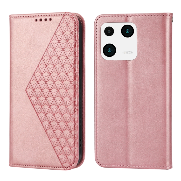 Para Xiaomi 13 Caja de Teléfono de Cuero Magnético con Textura de Pantorrilla de Rejilla Cúbica (Oro Rosa)