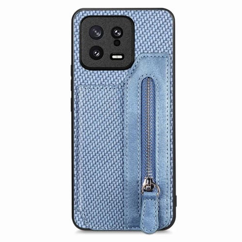 Para Xiaomi 13 Carbon Fiber Flip Zipper Wallet Phone Case (Azul)