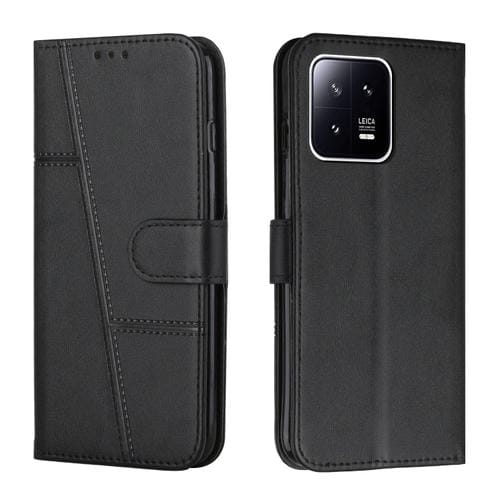 Para Xiaomi 13 Costura Becerro Textura Hebilla Funda de Cuero para Teléfono (Negro)