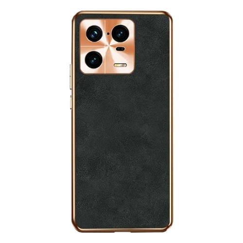 Para Xiaomi 13 Funda de Cuero de Piel de Cordero Galvanizada (Negro)
