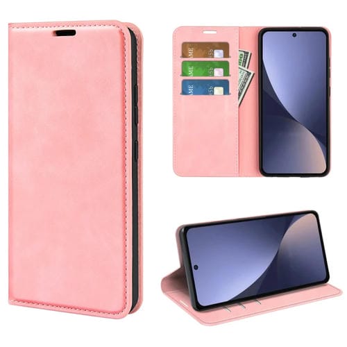 Para Xiaomi 13 Funda de Teléfono de Cuero con Succión Magnética de Piel Retro (Rosa)