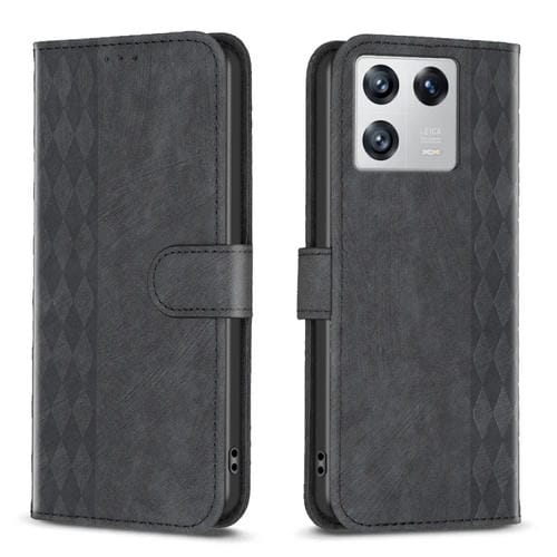 Para Xiaomi 13 Funda de Teléfono de Cuero En Relieve a Cuadros (Negro)