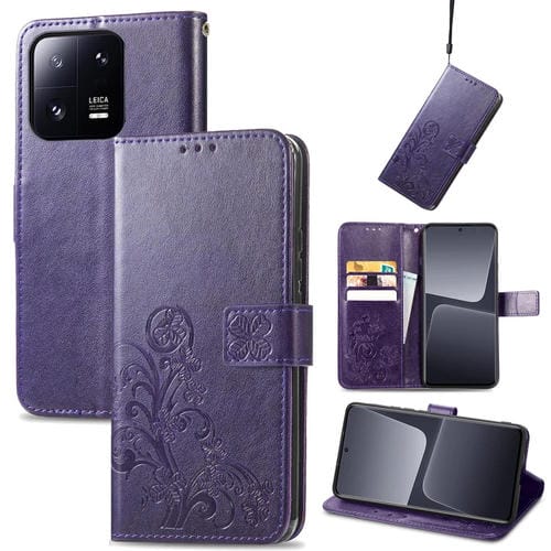 Para Xiaomi 13 Pro Estuche para Teléfono de Cuero con Hebilla En Relieve con Cierre de Cuatro Hojas (Púrpura)