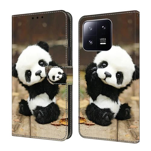 Para Xiaomi 13 Pro Funda de Teléfono de Cuero Pintado con Cristales (Panda)