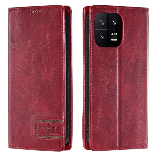 Para Xiaomi 13 Ttudrch Rfid Funda de Cuero con Textura Retro (Rojo)