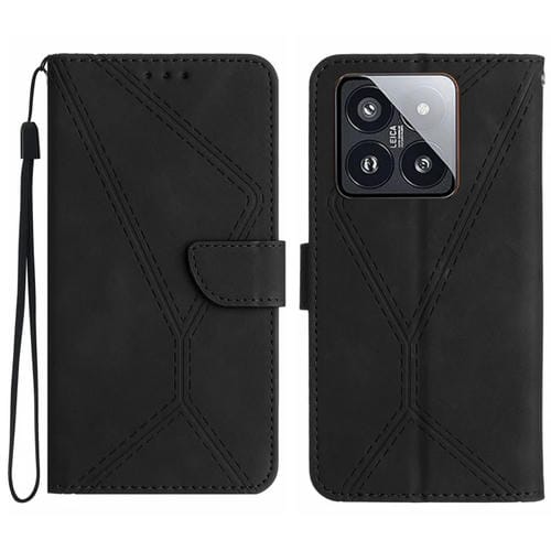 Para Xiaomi 14 Funda De Teléfono De Cuero Con Costuras En Relieve (Negro)