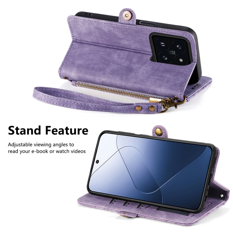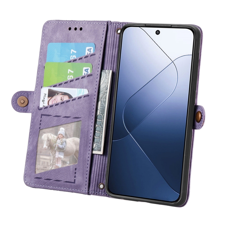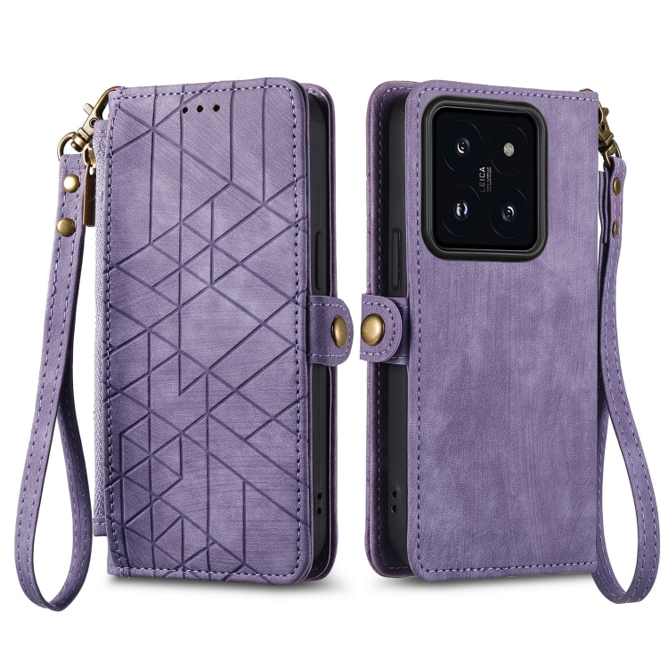 Para Xiaomi 14 Funda De Teléfono De Cuero Con Hebilla Lateral Y Billetera Con Cremallera Geométrica (Púrpura)