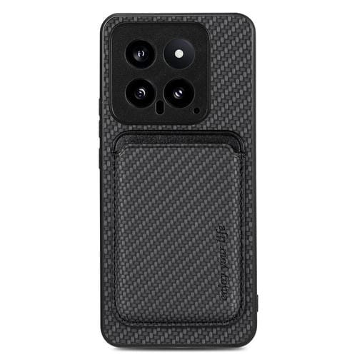 Para Xiaomi 14 Funda Magnética Para Teléfono Con Tarjeta De Cuero De Fibra De Carbono (Negro)