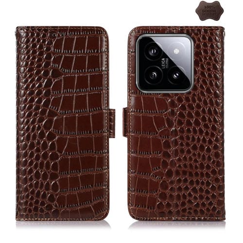 Para Xiaomi 14 Funda Para Teléfono De Cuero De Vaca Con Capa Superior De Cocodrilo (Marrón)