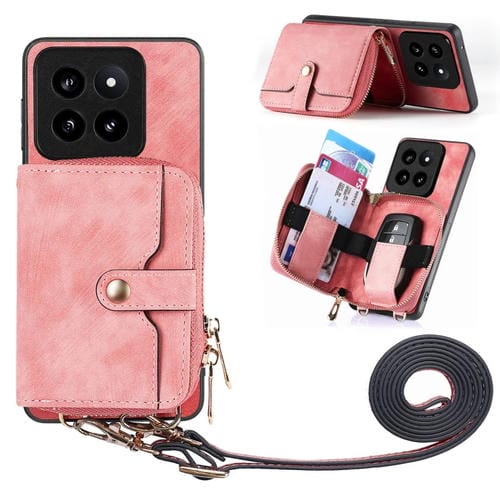 Para Xiaomi 14 Pro Crossbody Funda Para Teléfono Con Billetera Con Cremallera Multifunción (Rosa)