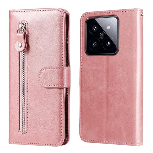 Para Xiaomi 14 Pro Fashion Becerro Textura Cremallera Funda De Cuero Para Teléfono (Oro Rosa)