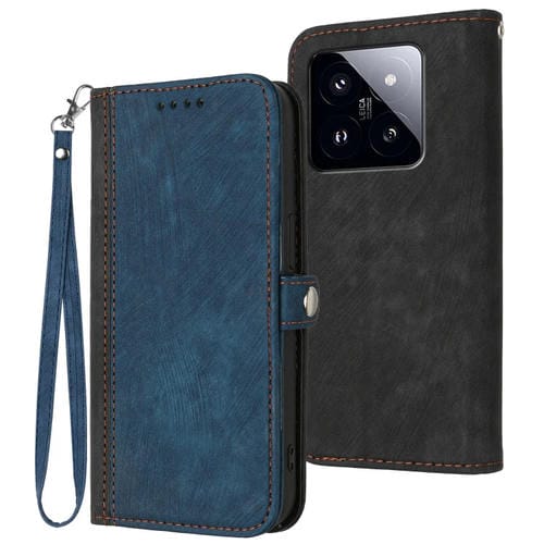 Para Xiaomi 14 Pro Hebilla Lateral Doble Pliegue Correa De Mano Funda De Cuero Para Teléfono (Azul Real)