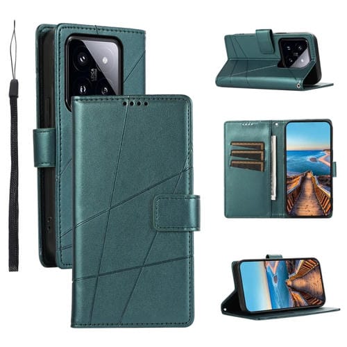 Para Xiaomi 14 Pro Pu Funda De Teléfono Con Línea En Relieve Con Textura De Cuero Genuino (Verde)
