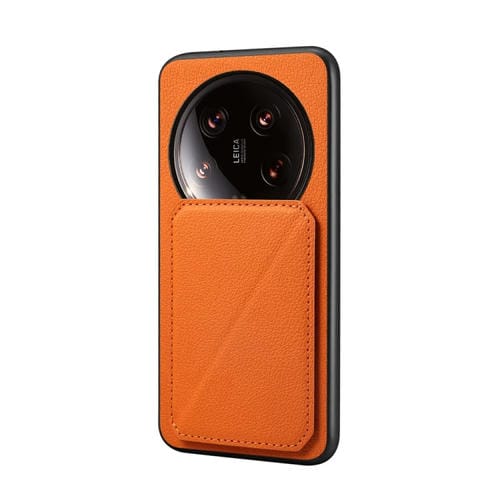 Para Xiaomi 14 Ultra D04 Funda Para Teléfono Con Soporte Para Ranura Para Tarjeta Dual Con Textura De Pantorrilla (Naranja)
