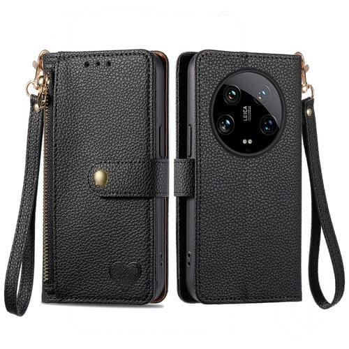 Para Xiaomi 14 Ultra Love Zipper Lanyard Funda De Cuero Para Teléfono (Negro)