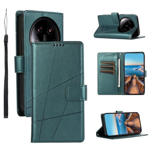 Para Xiaomi 14 Ultra Pu Funda Para Teléfono Con Textura De Cuero Genuino En Relieve (Verde)