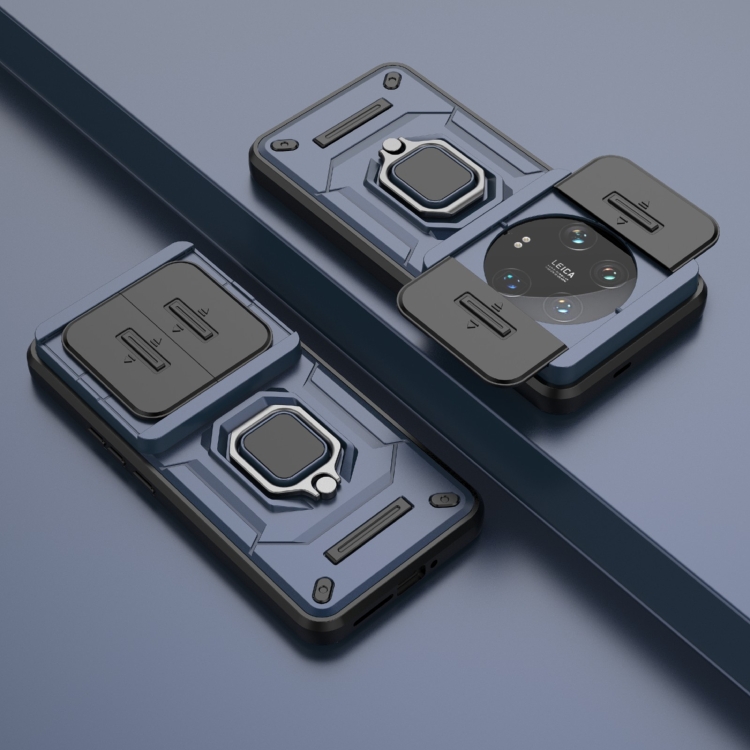 Para Xiaomi 14 Ultra Sliding Camshield Tpu + Pc Funda Para Teléfono A Prueba De Golpes Con Soporte (Azul)