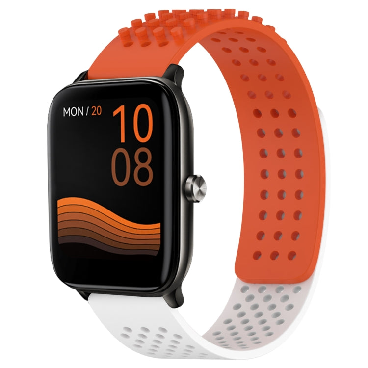 Correa de Reloj de Silicona para Xiaomi Haylou Gst Ls09B con Puntos 3D Transpirables y Orificios de 22mm (Naranja + Blanco)