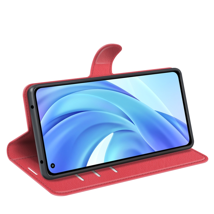 Para Xiaomi Mi 11 Lite Litchi Texture Horizontal Flip Funda Protectora con Soporte y Ranuras para Tarjetas y Billetera (Rojo)