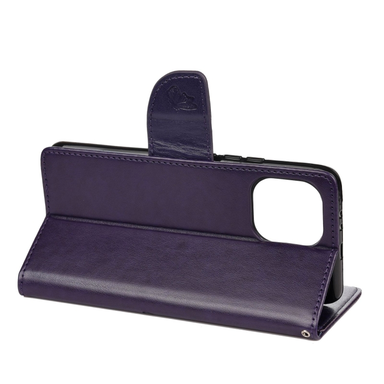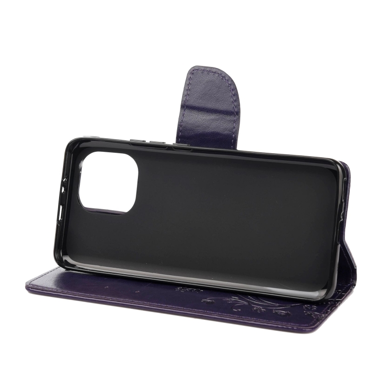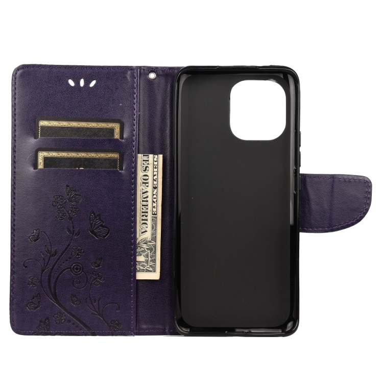 Para Xiaomi Mi 11 Patrón de Flores de Mariposa Flip Horizontal Funda de Cuero con Soporte y Tragamonedas y Billetera (Púrpura Profundo)