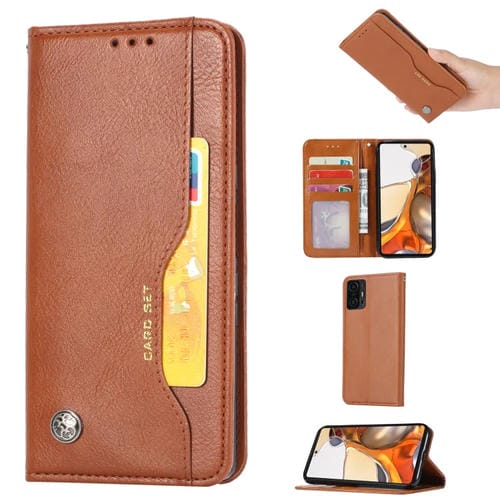 Para Xiaomi Mi 11T / 11T Pro Skead Texture Horizontal Flip Funda de Cuero con Marco y Soporte de Fotos y Tragamonedas y Billetera (Marrón)