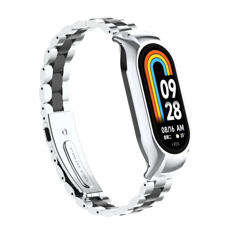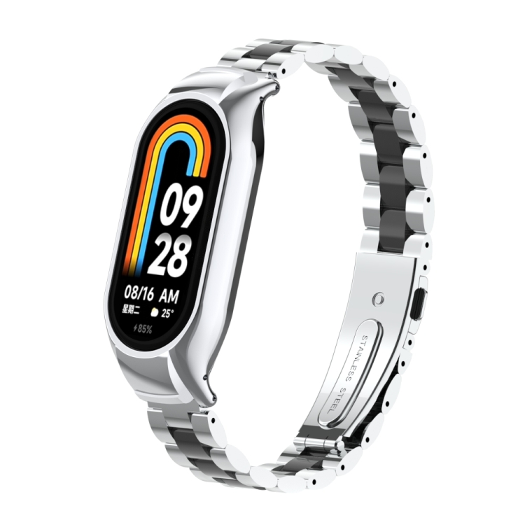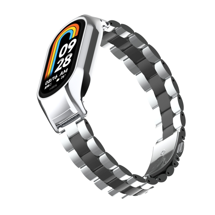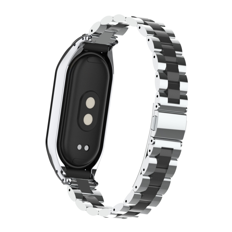Caja de Metal Integrada para Xiaomi Mi Band 8 + Banda de Reloj de Tres Cuentas (Plata + Negro)