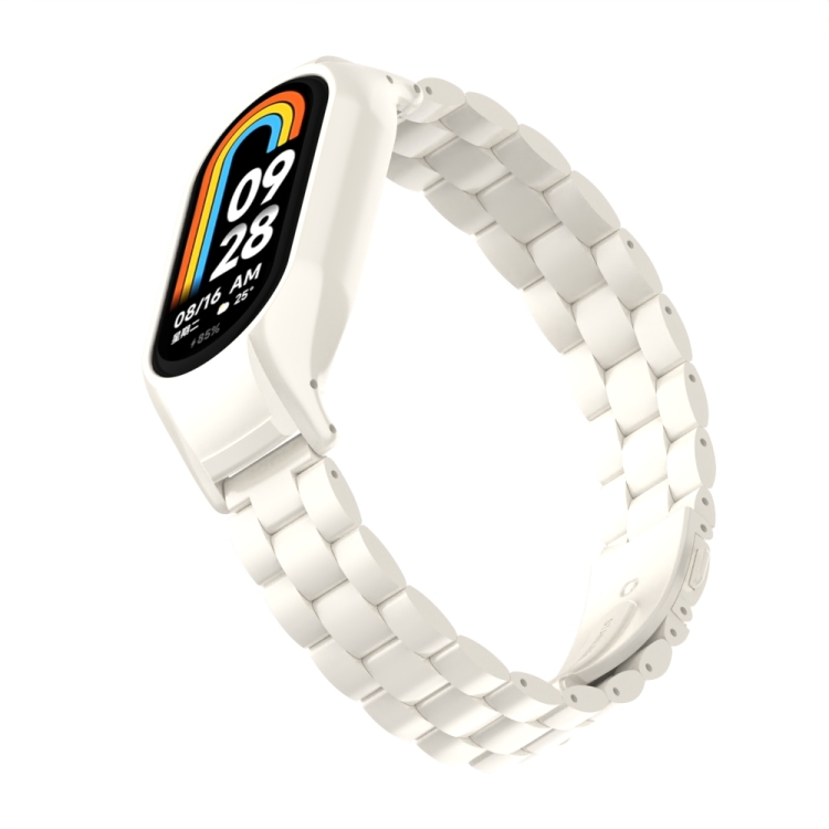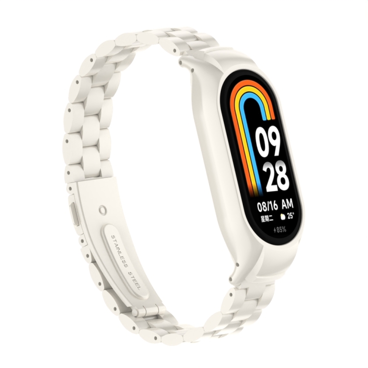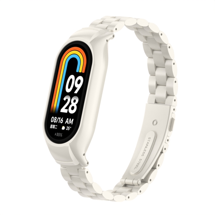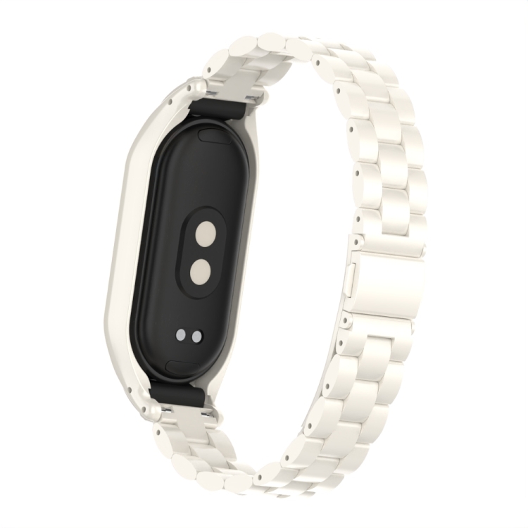 Caja de Metal Integrada para Xiaomi Mi Band 8 con Correa de Reloj de Tres Cuentas (Beige)