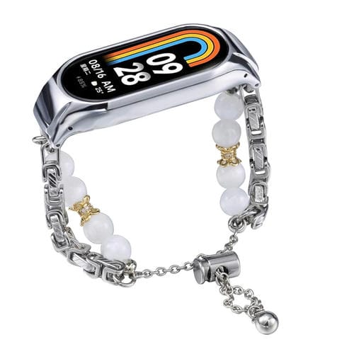 Correa de Reloj para Xiaomi Mi Band 8 Ónix con Cuentas de Cristal (Plata) y Collar de Cobre