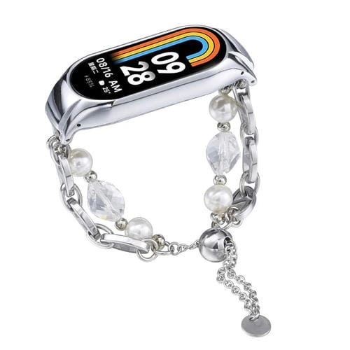 Correa de Reloj para Xiaomi Mi Band 8 Ónix con Cuentas de Cristal (Plata)