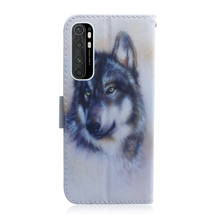 Para Xiaomi Mi Note 10 Lite Funda de Cuero con Tapa Horizontal con Dibujo a Color con Soporte, Ranura para Tarjeta y Billetera (White Wolf)