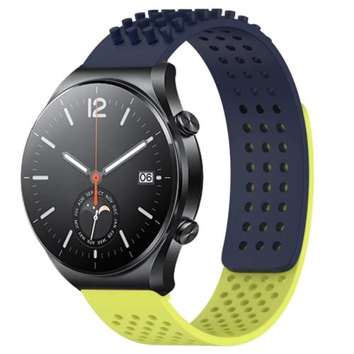 Correa de Silicona para Xiaomi Mi Watch S1 con Puntos 3D Transpirables y Orificios de 22mm (Azul Medianoche + Verde Lima)