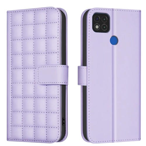 Para Xiaomi Poco C31 / Redmi 9C / 10A Funda de Cuero para Teléfono con Textura Cuadrada (Púrpura)