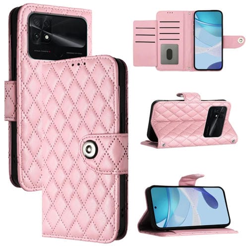 Para Xiaomi Poco C40 Funda para Teléfono de Cuero con Tapa con Textura Rómbica y Cordón (Rosa)