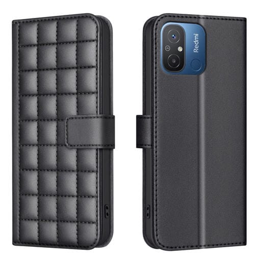 Para Xiaomi Poco C55 / Redmi 12C Funda de Cuero para Teléfono con Textura Cuadrada (Negro)