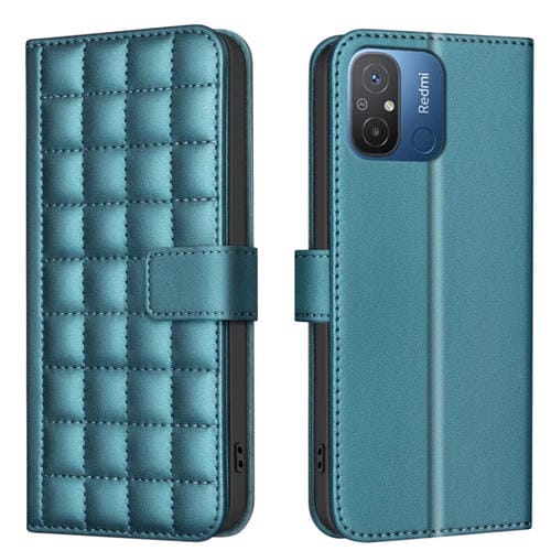Para Xiaomi Poco C55 / Redmi 12C Funda de Cuero para Teléfono con Textura Cuadrada (Verde)