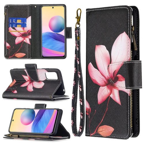 Para Xiaomi Poco M3 Pro / Redmi Note 10 5G Color de Dibujo de Dibujo con Cremallera Caja de Cuero de Flip Horizontal con Soporte y Tragamonedas y Billetera (Lotus)